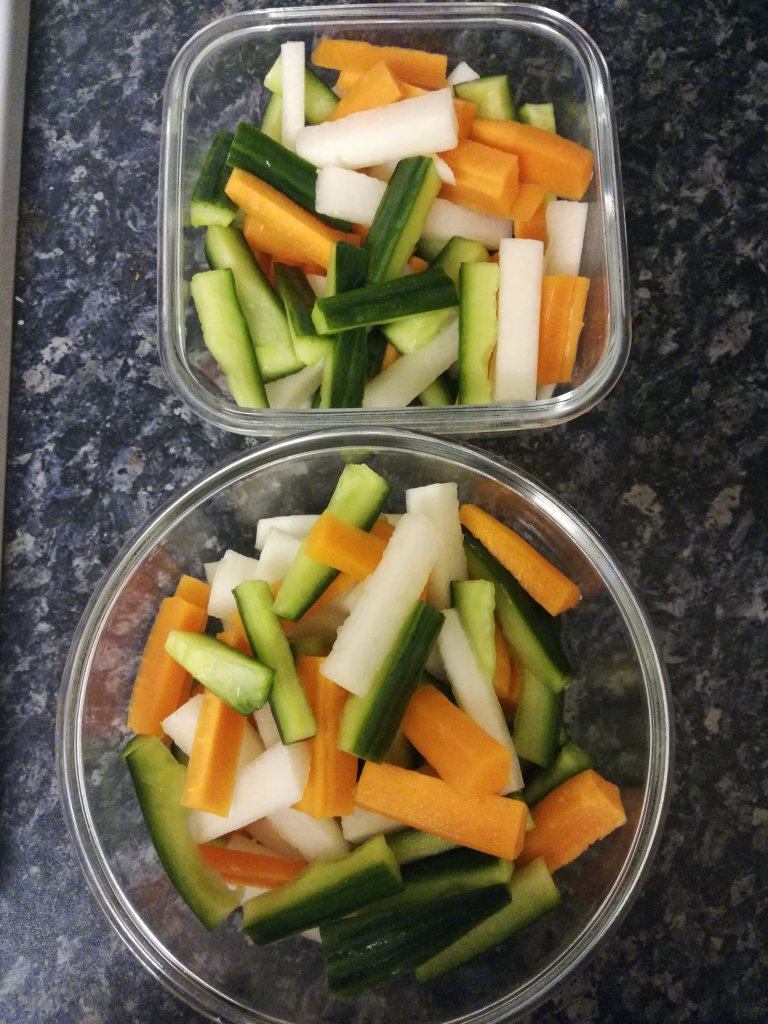 If you want quick pickling then I think this is the way to go. It doesn’t take long and you can eat pickled vegetables the same day! I think I will try do to my own pickling liquid at some point, so watch this space!