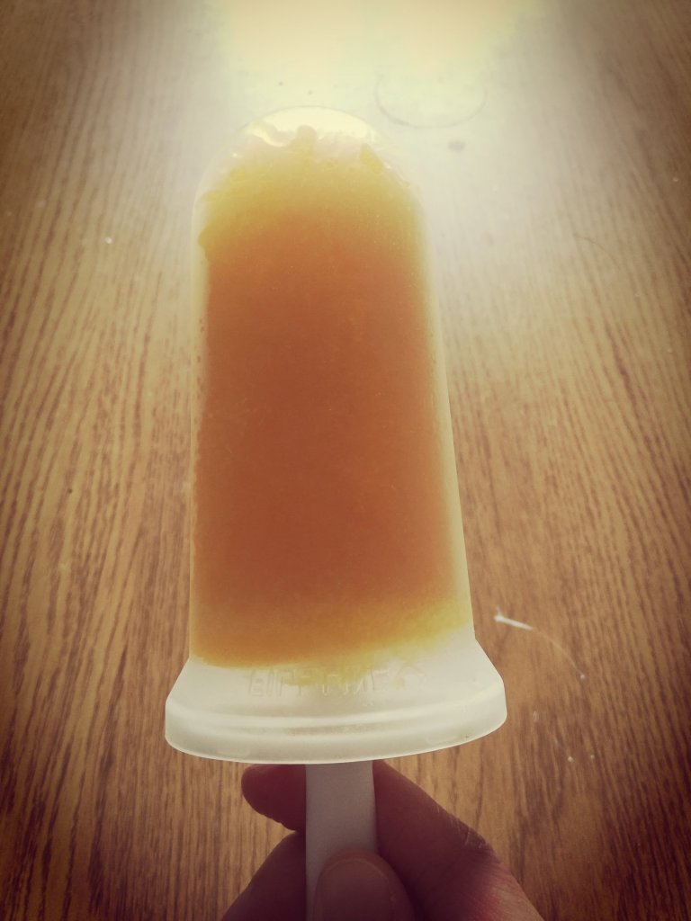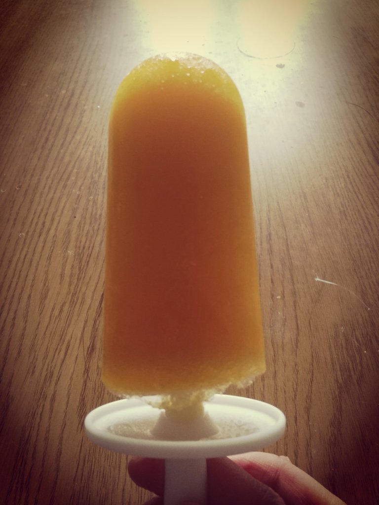 I had plenty of orange juice left from my smoothies last week so I thought I’d make it into ice lollies. I didn’t add anything else to it, it’s just pure orange juice.