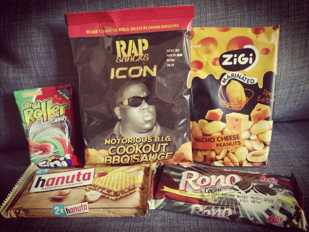 The Rap Snacks Icon are US, hanuta is Germany, Nefis Rono is Moldova, Fini Roller is Spain and the nuts are Bulgaria.
