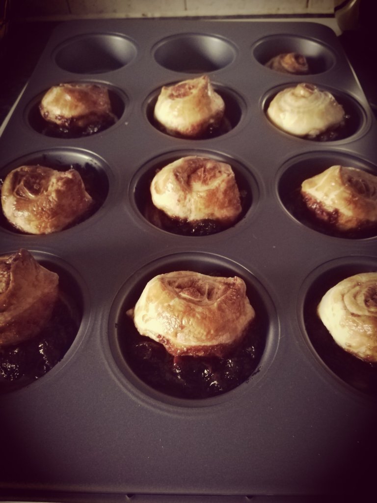 So I did 2 Christmas bakes with the filling. I did mince pie tarts and mince pie cinnamon rolls. The tarts were a YouTube bake and the cinnamon rolls were another BBC Good Food recipe.